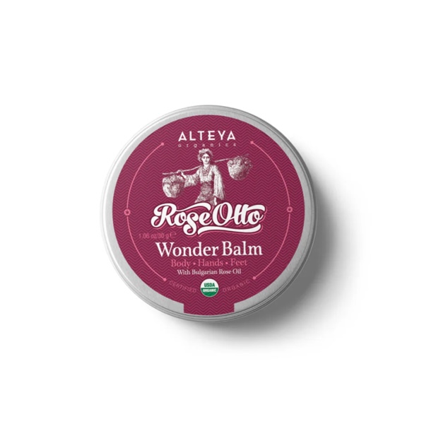 Lusciously scented, this Alteya Organic Rose Otto Wonder Balm helps silken, moisturize and boost natural skin glow. Formulated with the pure and precious Bulgarian Rose Otto this aromatherapy balm helps enhance romance, attract love and uplift the spirits, inspires harmony and rejuvenates body and mind.