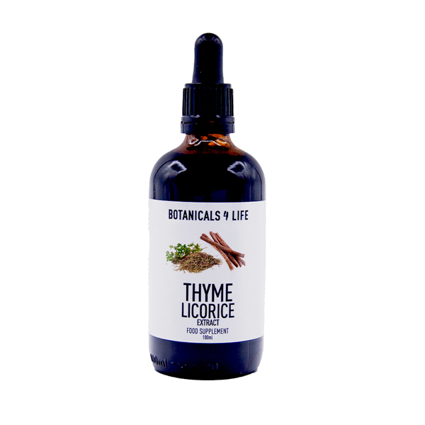Botanicals 4 Life use a unique triple extraction process using both alcohol and cold water in order to maximise the uptake of the full spectrum of key nutrients. In the 3rd stage of extraction, the alcohol is evaporated and replaced with glycerine. Vegetable glycerine is low GI and acts as a natural preservative. Botanicals 4 Life Thyme & Licorice soothing mixture is a potent combination of herbs rich in aromatic oils and other key nutrients. This pungent, sweet combination makes an ideal accompaniment to warm drinks.
