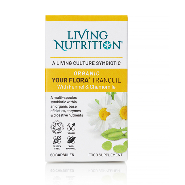 Living Nutrition Your Flora Tranquil includes an organic herbal blend specially selected for nervous digestion. It is a Living Culture SymbioticTM based on a unique formulation, providing a complete ecosystem of microbes, colonising factors, and other compounds to nourish your unique microbiome.