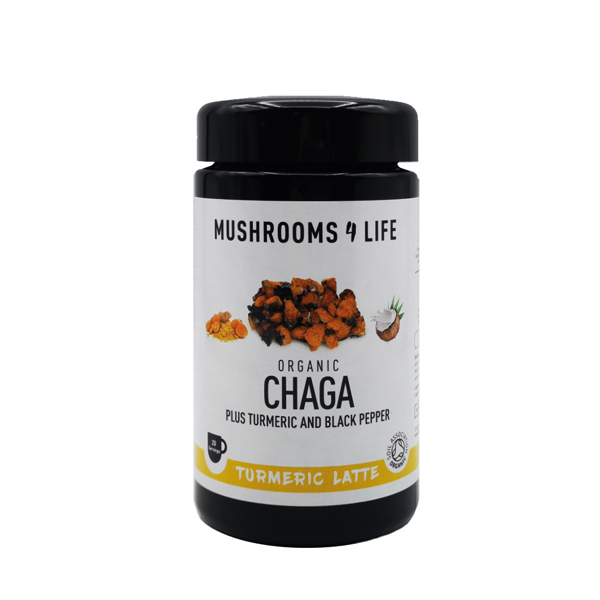 Mushrooms 4 Life Chaga Turmeric Latte mix combines organic spices such as ginger, cinnamon and cardamom to provide depth and flavour, enriched by the bold partnership of black pepper and turmeric. Creamy coconut sweetness provides the finish. Smooth flavours expertly blended with Chaga’s all-round protective properties for a warming aid to digestion and spirit alike.