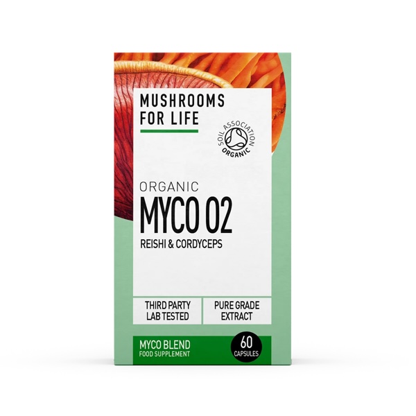 Mushrooms 4 Life Myco 02 – 100% organic blend of Cordyceps & Reishi mushrooms. For respiratory health and fitness.