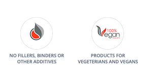 NO WHEAT – NO GLUTEN – NO CORN – NO SOY – NO YEAST – NO DAIRY – NO GELATINE – NO ANIMAL INGREDIENTS – NO ADDITIVES – NO ADDED SUGAR – NO COLOURS – NO FLAVOURS – NO PRESERVATIVES