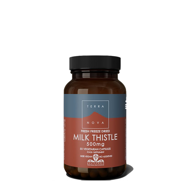 Terranova Milk Thistle 500mg (Fresh Freeze Dried). The Terranova philosophy embodies complete nourishment, deep healing and profound wellbeing. No fillers, binders or other excipients. 100% suitable for Vegans.