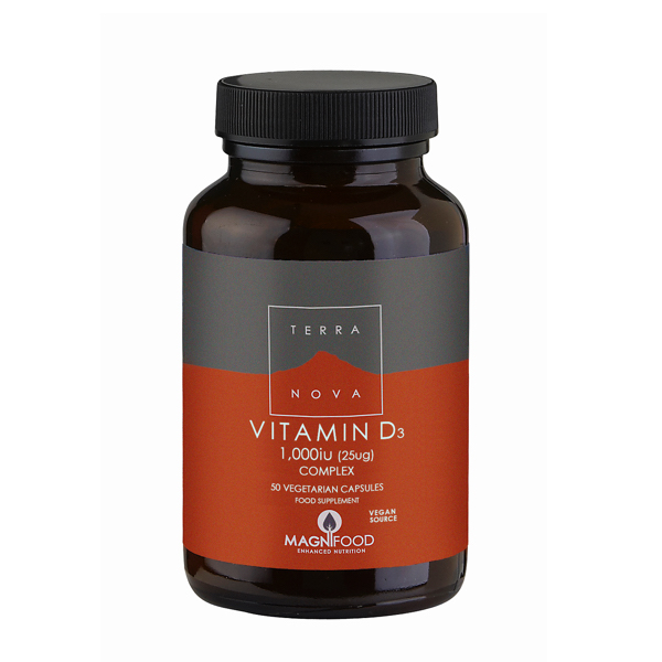 Terranova Vitamin D3 1000iu Complex (25µg). The Terranova philosophy embodies complete nourishment, deep healing and profound wellbeing. No fillers, binders or other excipients. 100% suitable for Vegans.